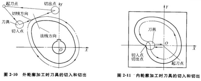 在數(shù)控銑床及加工中心中銑削平面工件外輪廓時(shí)一般采用立銑刀側(cè)刃切削。應(yīng)避免沿工件外輪廓的法向切入,而應(yīng)沿外輪廓曲線的切線方向(或曲線延長(zhǎng)線的切向)切入,在切離工件時(shí),也應(yīng)沿外輪廓曲線的切線方向(或曲線延長(zhǎng)線的切向)切離工件,以避免切入成切離時(shí)在工件上產(chǎn)生痕跡(見圖2-10)。在銑削封閉的內(nèi)輪廓側(cè)面時(shí)(見圖2-11),因內(nèi)輪廓曲線不允許外延(或切線方向與輪廓曲線相交),刀具只能沿輪廓曲線的法向切入和切出,此時(shí)刀具的切入和切出點(diǎn)應(yīng)盡*選在內(nèi)輪廓曲線兩幾何元素的相交處。如果曲線都是平滑過(guò)渡的,那么切離時(shí)應(yīng)在切入點(diǎn)處繼續(xù)沿曲線切削一段后(把切入點(diǎn)處的刀痕及由于刀具半徑補(bǔ)償引起的加工殘余切除)沿法向切出。在輪廓的銑削過(guò)程中要避免進(jìn)給停頓,否則會(huì)因銑削力突然變化而在停頓處的輪廊表面上留下刀痕。